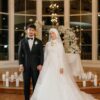 This elegant white dress, with its flowing A-line silhouette and delicate floral details, is crafted entirely to your unique measurements. The high-neck bodice with long sleeves ensures both comfort and sophistication, while the lace-adorned veil adds a romantic finishing touch. Every detail is made-to-measure, creating a truly one-of-a-kind gown for your most special day.