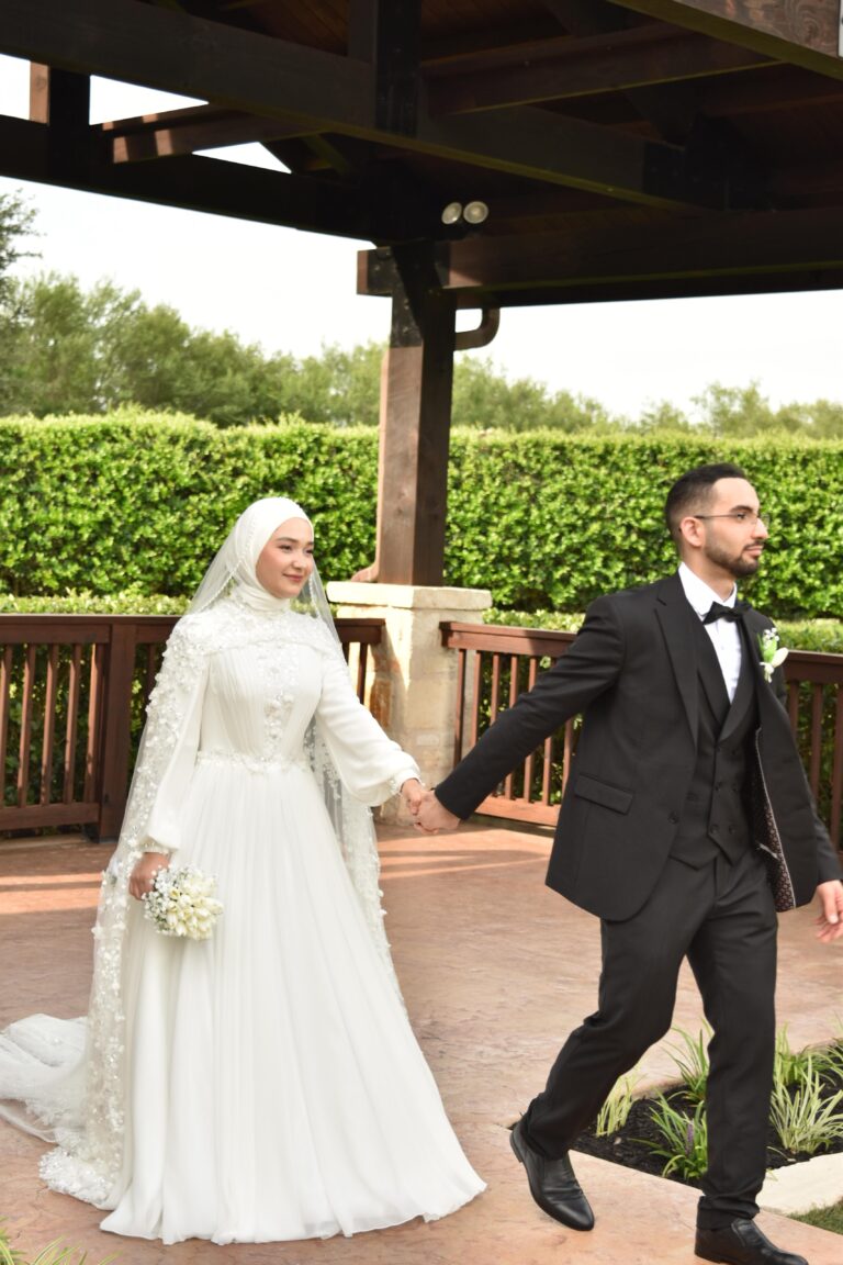 Special Details: Hand-applied lace on the veil and sleeves, elegant draping for graceful movement, and a romantic veil that enhances the overall look